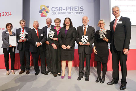 Für die Bundesregierung ist CSR daher ein wichtiges Thema. Bereits zum zweiten Mal verleiht sie den CSR-Preis an Firmen, die das Thema als unternehmerische Gesamtaufgabe begreifen. Diesen Anspruch unterstreicht auch die Bundesministerin für Arbeit und Soziales, Andrea Nahles (SPD): „Wer nachhaltig wirtschaftet, investiert in den eigenen Unternehmenserfolg. Viele Unternehmen in Deutschland haben dies bereits erkannt und verantwortliches Handeln bewusst im betrieblichen Alltag verankert. Die in diesem Jahr ausgezeichneten Unternehmen haben bewiesen, dass beständiges Engagement nicht nur die Gesellschaft in Deutschland stärkt und Entwicklungschancen in anderen Ländern eröffnet, sondern auch die eigenen Mitarbeiterinnen und Mitarbeiter sowie Kundinnen und Kunden begeistern kann. Wir hoffen, dass dieser Einsatz viele Nachahmer findet.“